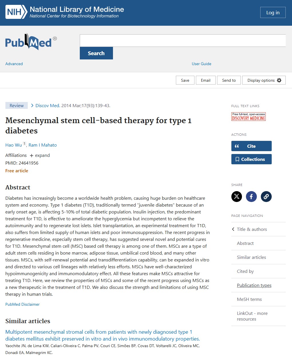 To support our transformative approach, we provide direct access to research articles demonstrating the efficacy of mesenchymal cell (MSCs) therapies in managing and addressing diabetes complications.